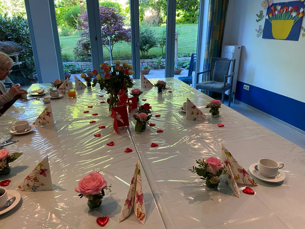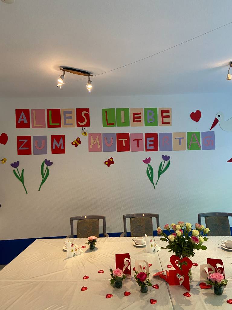 In unseren lichtdurchfluteten Räumlichkeiten mit einem wunderschÜnen Blick auf einen grßnen Garten haben wir den Muttertag mit viel Herz gefeiert. Dekoriert mit bunten Blumen, Herzen und liebevoll gesteckten Details, herrschte eine warme und einladende Atmosphäre. Ein besonderer Tag, der unsere Wertschätzung in den Mittelpunkt stellte. #Muttertag #PflegeMitHerz #Wertschätzung